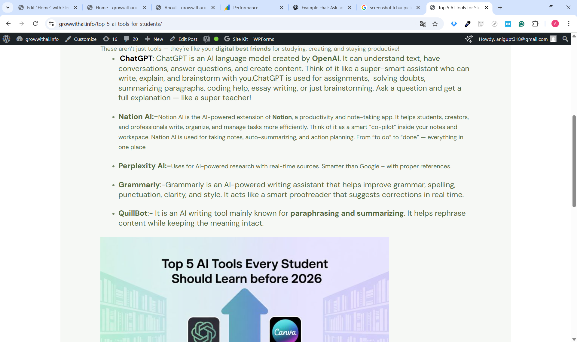 1. Researched keywords and selected primary keyword: “AI tools for marketing” / “free AI tools for students”.